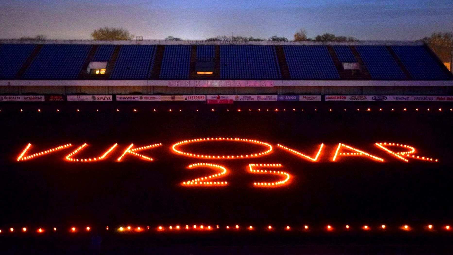Oko terena su postavljene stotine svijeća, a na njegovom središtu velikim slovima je ispisano ime Grada heroja, kao i broj 25 koji simbolizira 25 godina od žrtve Vukovara.